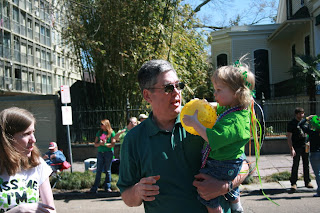 Our little St. Patty's Day parade trooper! He was pretty unsure of all the sirens and noise when the parade started but then people started giving him "stuff"!